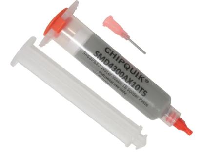 I have tested several types of solder paste, but only the SMD4300AX10T4 soldering paste from Chip Quik works fine with the tiny 22G blue tip.