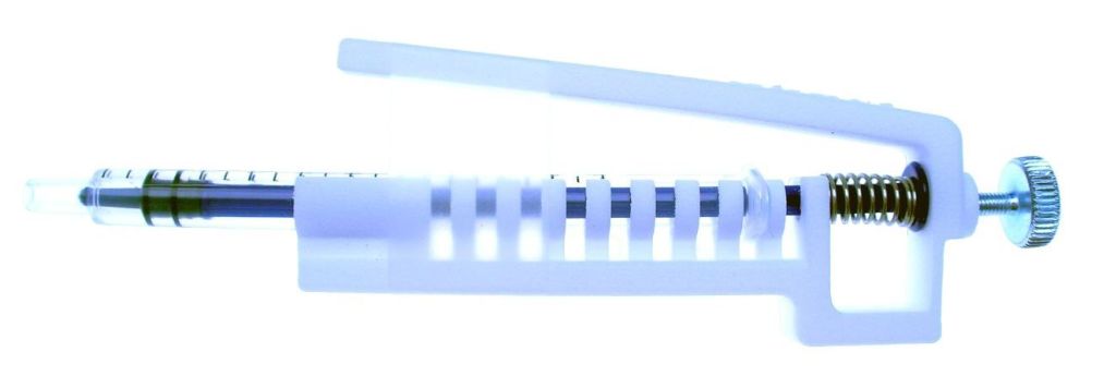 Mounting the syringe with spring requires some practice, be careful not to force the holder: